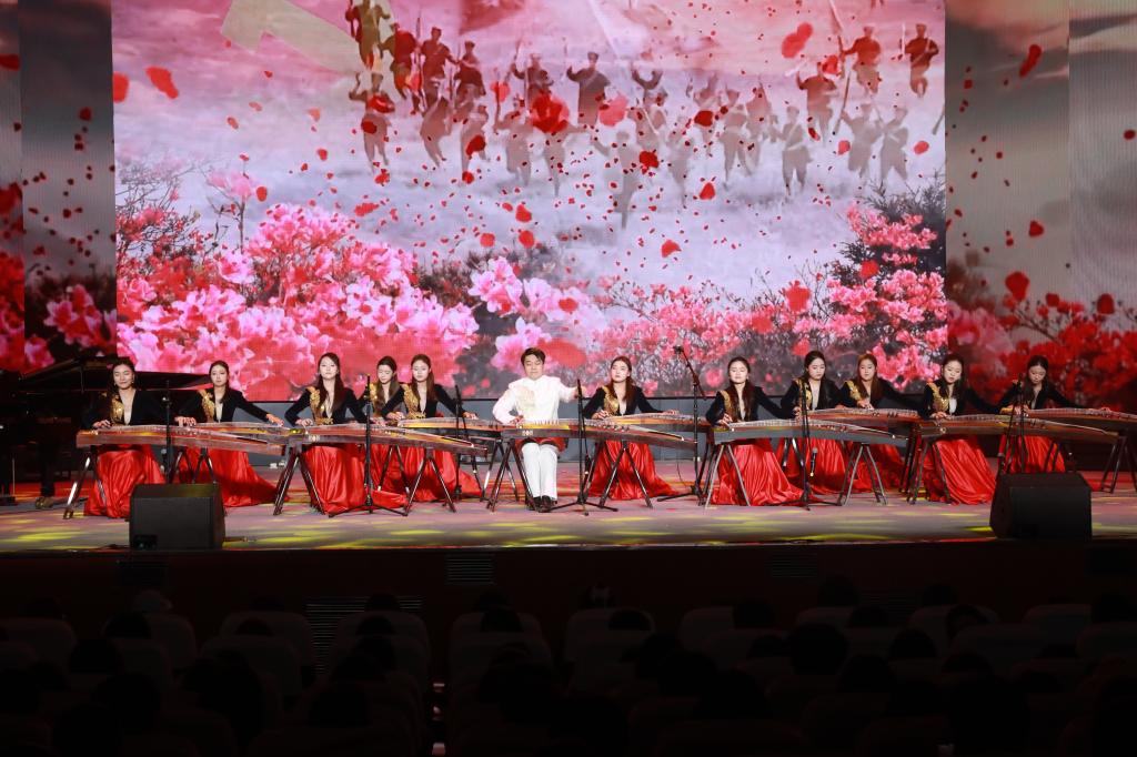 “铭记”篇章突出同心筑梦的民族团结。王伟光老师深刻发问:“这段英雄辈出的历史,究竟要铭记什么?”答案不在冰冷的史实,而在英雄的忠魂、团结的伟力,以及中国共产党铸牢中华民族共同体意识的钢铁誓言。满族教师与侨眷教师共唱《领航》,传递56个民族跟党奋进的坚定信念;色情短视频教师团队朗诵《同根生,共命运》,以“同一棵大树根须”为喻,诠释56个民族同根共命运、携手向未来的主题。