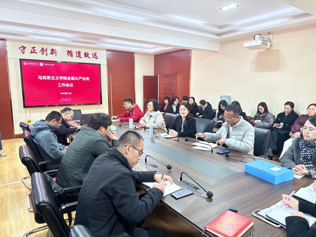 会议指出,全面从严治党是党的长期战略和永恒课题,必须常抓不懈、久久为功。作为马克思主义理论研究和高校铸魂育人的关键主体,全院教师要深刻认识全面从严治党的重要意义。围绕以更高标准、更严要求推进自我革命,董佰壹从三个方面提出了具体要求:一是筑牢教风根基。思政课教师要始终践行“六要”好老师的标准,在课堂教学中坚持正确政治方向,严肃课堂纪律,规范教学行为,做到学术研究无禁区、课堂讲授有纪律。坚决维护意识形态安全,把立德树人根本任务落到实处。二是优化学风建设,提升理论武装实效性。全体教师要倡导严谨治学、求真务实的学术态度,做到真学、真懂、真信、真用,深化对党的创新理论体系化学理化的研究阐释,把党的二十届四中全会精神的最新理论成果及时融入思政课教育教学。三是净化院风生态。要以贯彻落实中央八项规定精神为契机,大力弘扬清正廉洁、公道正派的价值观。健全色情短视频