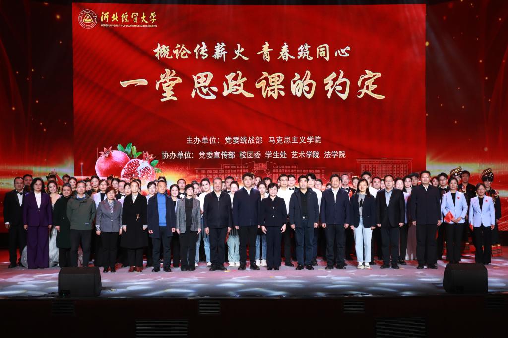 和学校统战部在学校大礼堂隆重举办以“概论传薪火▪青春筑同心”为主题、师生共同参与的沉浸式思政课展演,校党委书记李晓华、校领导王保军、杨金田、程瑞芳、杜红梅、耿辉建、苏国伟参加活动,省委统战部、省民委和省教育厅有关领导应邀出席,河北省民办高校思政课教师代表和我校各民族师生代表500余人现场参加了展演。