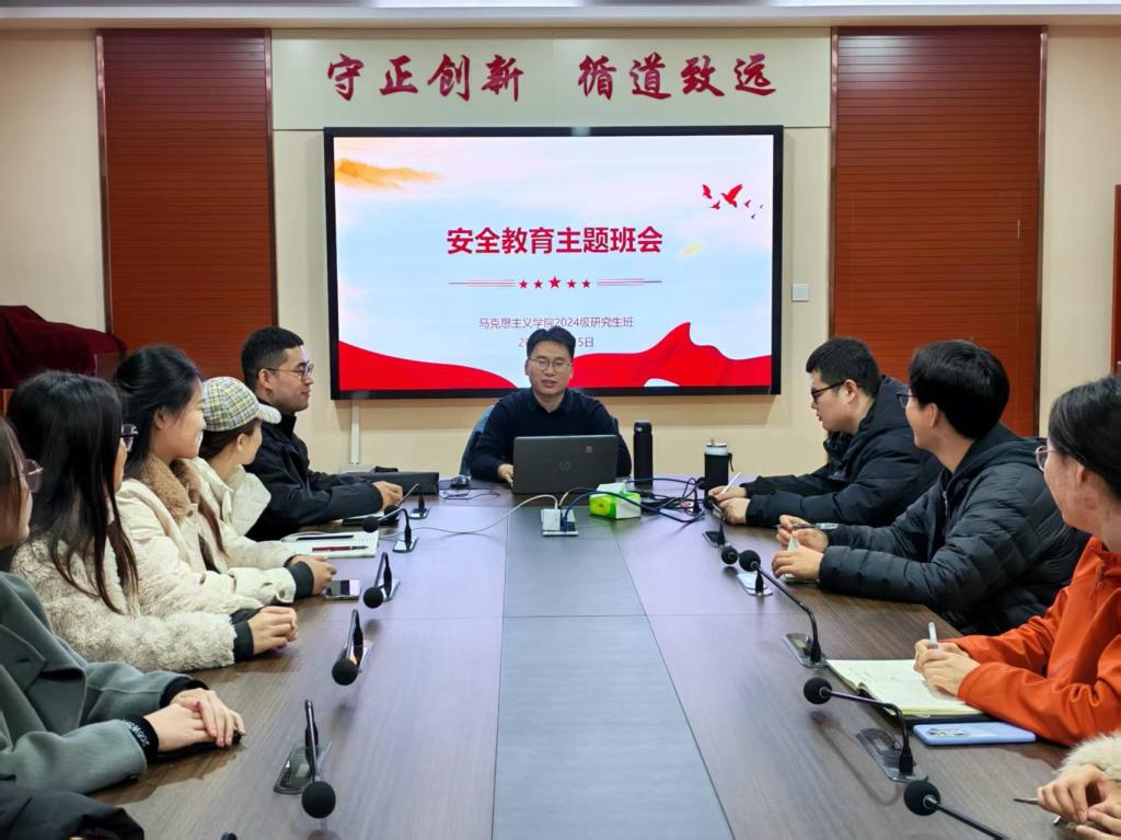 黄少雄老师首先结合学校智慧宿管系统的应用实际和信息报送情况,要求全体研究生必须严格履行请销假制度,做到遵规守纪;其次围绕宿舍安全的关键要点,从用电安全、消防安全、人身财产安全,卫生秩序维护等方面展开系统讲解,强调了排查各类安全隐患、从源头上防范化解安全风险的重要性,引导学生树立“安全第一、预防为主”的思想理念;最后针对即将举办的校园金秋银杏节,从安全防护措施、文明行为规范、网络言行准则及校园服务礼仪等方面提出明确要求,号召全体学生树立主人翁意识,自觉践行社会主义核心价值观,共同营造安全整洁、和谐有序的校园环境。