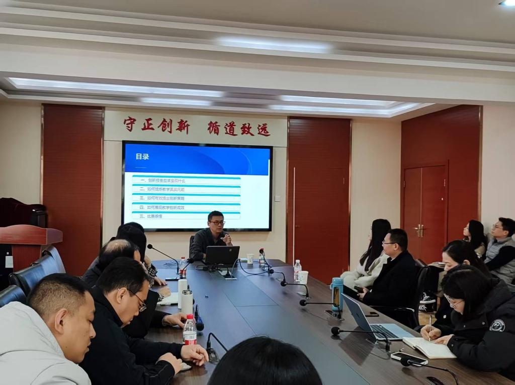 参赛教师依次展示了修改后的教学创新成果报告。苑教授逐一进行细致点评,在问题聚焦、逻辑架构、数据支撑、术语规范等方面提出具体建议,并分享了其最新的课程创新设计方案,为在场教师提供了宝贵的参考范式。